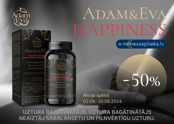 Septembrī uztura bagātinātajam Adam&Eva HAPPINESS ir atlaide -50 % interneta aptiekā e-menessaptieka.lv