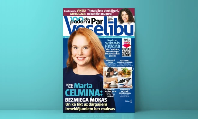 Visu interviju lasiet žurnāla “100 labi padomi Par Veselību” jaunākajā numurā. Vēl žurnālā – saruna ar miega speciālisti Martu Celmiņu, traumatologa ortopēda, pēdas ķirurga Jura Brūkļa padomi, kā saglabāt veselas pēdas, augu pazinējas Valentīnas Stepiņas ieteikumi, kuru ārstniecības augu saknes rakt un žāvēt tieši tagad, kā arī citi noderīgi padomi par veselību. Žurnālu var iegādāties preses tirdzniecības vietās visā Latvijā.