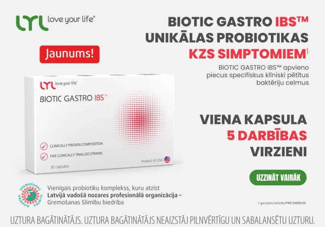 “Ziniet, man ir kas tāds padomā!” speciālists ar entuziasmu iesāka sakāmo. “Vai esat lietojusi pašmāju ražotāja LYL love your life® BIOTIC GASTRO IBS™? Veidojot šī produkta formulu, speciālisti ir ņēmuši vērā vienu būtisku faktoru: kairinātas zarnas sindroma pacientiem zarnu mikrobiota būtiski atšķiras no veselu cilvēku mikrobiotas – tā ir mazāk daudzveidīga. Tāpēc ir jārūpējas par tās regulāru papildināšanu ar labajām baktērijām. Un šajā jaunajā produktā ir ievērojams apjoms mērķētu baktēriju – 30 miljardi! Īpaši efektīvi tas palielina Bifidobacterium un Lactobacillus ģints baktēriju skaitu – šo ģinšu baktēriju skaits KZS pacientiem ir īpaši mazs.”