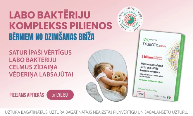 Sazinājos ar ģimenes ārsti un jautāju, kā sagatavoties iespējamām kolikām, ka varbūt jau vajadzētu Gustavam sākt dot labās baktērijas. Ārste atbildēja apstiprinoši, sakot, ka jaundzimušā mikrobiomu ietekmē dažādi faktori, nereti izjaucot dabisko zarnu trakta līdzsvaru. Viņa uzreiz arī ieteica labo baktēriju izlasi LYLBIOTIC Drops, kuras viena deva satur vismaz miljardu labo baktēriju, kas ir diennaktī mazuļiem ieteicamais baktēriju daudzums ar mērķi nodrošināt iedarbības efektivitāti.