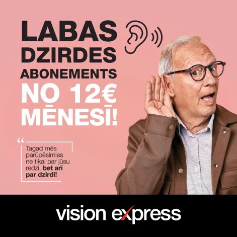 - Pieraksts uz dzirdes pārbaudi – rezervējiet vizīti tuvākajā Vision Express dzirdes centrā. Pārbaude ir pirmais solis, lai saprastu, kāds dzirdes risinājums ir vispiemērotākais.