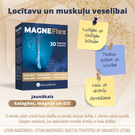 Laba izvēle varētu būt inovatīvais komplekss MAGNEFlex no Lotos Pharma, kas izstrādāts kopā ar Latvijas vadošajiem traumatologiem/ortopēdiem un paredzēts gan skrimšļiem, gan muskuļiem, gan kauliem - VISAI locītavai.