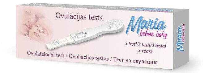 Ovulācijas testa « Maria Baby » darbība balstās uz luteinizējošā hormona (LH) koncentrācijas palielināšanos urīnā. Neliels LH daudzums cilvēka urīnā ir vienmēr, tomēr 24 - 36 stundas pirms ovulācijas (olšūnas izkļūšanas no olnīcas) šī hormona daudzums strauji palielinās. Lai plānotu grūtniecību, jums ir nepieciešams zināt tieši šīs dienas. Pirms lietošanas uzmanīgi izlasiet instrukciju.