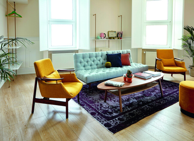 Tās interjers, kura autore ir izraēļu dizainere Alona Eliasi, izturēts 50. gadu stilistikā – ar stilizētām šā perioda mēbelēm un dekoratīvām, tropiskus motīvus izspēlējošām tapetēm.