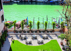 Kā jau leģendāram palazzo piedien, no bāra paveras Lielā Kanāla panorāma un kokteiļiem līdzvērtīgi reibinoši saulrieti...