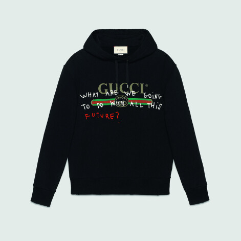 Koko Kapitana speciāli Gucci radījusi tekstuālu mākslu kā modes komunikācijas veidu, ar ironiskām frāzēm – “I want to go back to believing a story”, “What are we going to do with all this future?” un “Common sense is not that common” – izrotājot Gucci garderobes bāzes izstrādājumus. Ielu mode un dārga, 550 – 1000 ASV dolāru vērta ironija par luksusu.