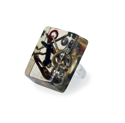 “Ar šo gredzenu saistās ļoti interesants stāsts. Tā pamats ir ielūgums, ko Armāns 1964. gadā izsūtīja dažiem sev ļoti īpašiem cilvēkiem uz izstādi, kuru rīkoja Ņujorkā. Manam vīram Bernāram tolaik Ņujorkā bija romāns ar kādu ļoti skaistu meiteni, un viņš jautāja Armānam, vai mākslinieks no ielūguma varētu uztaisīt gredzenu. Armāns acumirklī piekrita, un gredzens ir patiesi unikāls, jo to parakstījuši viņi abi – Armāns un Bernārs. Laiks ritēja, un kādā jaukā dienā pēc piecdesmit gadiem Bernāram pēkšņi zvanīja viņa toreizējā meitene, sakot, ka viņa izpārdod savu rotu kolekciju – varbūt viņš vēlas nopirkt šo gredzenu? “Protams,” teica Bernārs, un tā tas nonāca pie manis.”
