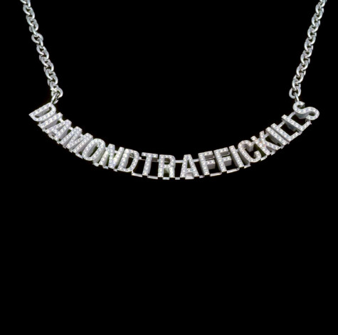 “Šī rota man ir ļoti mīļa, un jo īpaši man patīk to uzlikt reizēs, kad jādodas uz kādām stīvām vakariņām, kur viesu vidū ir daudziem briljantiem greznojušās lēdijas. Un es valkāju šo: “Diamond traffic kills.” ”