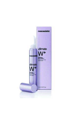 Mesoestetic balinošais līdzeklis pigmenta plankumiem Ultimate W. Paredzēts lokalizētai hiperpigmentācijas mazināšanai kakla, dekoltē, sejas un roku zonās. Samazina pigmentācijas plankumu lielumu un intensitāti, novērš jaunu parādīšanos. € 38,15.