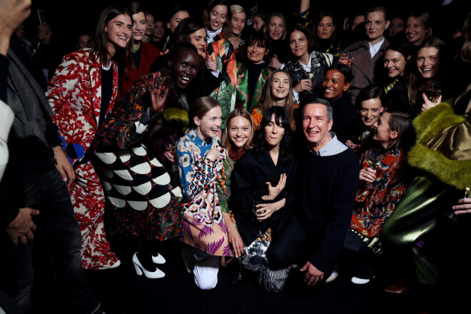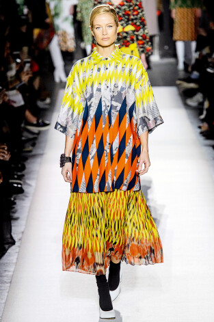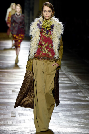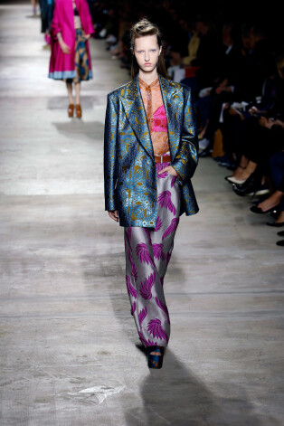 Savukārt šogad 1. martā, svinot savu simto skati, dizainers, ieskatījies modes nama arhīvos, pats no sevis aizlienēja pirmās, sestās, astotās un desmitās kolekcijas apdrukas un tām pāri pārdrukāja jaunas grafikas. Turklāt pieaicināja gandrīz visas modeles, kuras piedalījušās zīmola Dries Van Noten stāstā no pirmās līdz pēdējai skatei – dažādu vecumu sievietes ar dažādu ādas krāsu no dažādām pasaules malām. Katra no tām bija īpaša, un skates ideja, protams, simboliska – pagātne sastopas ar nākotni, to iedvesmojot.