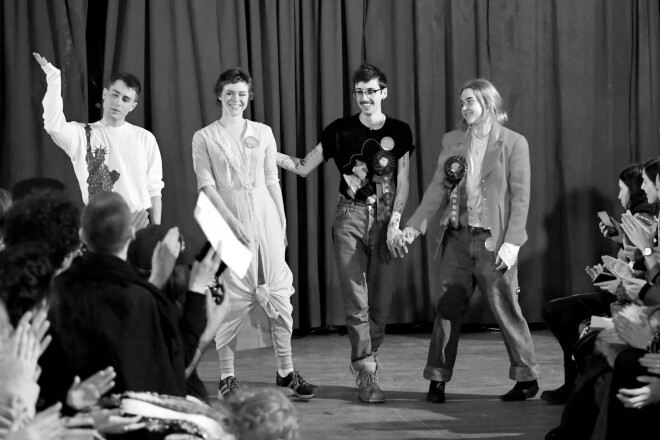 Kas? 2013. gadā jauno Ņujorkas dizaineru kvartets Patriks di Kaprio, Brins Taubenzē, Deivids Mozess un Klēra Sallija nodibināja zīmolu Vaquera, un nu tas ir CFDA/Vogue Modes Fonda konkursa finālists. Šie divdesmitgadnieki sava antimodes projekta avangarda kolekcijas atrāda nevis oficiālajās modes programmās, bet gan ķīniešu restorānos un uz metro platformām. “Vēlamies mainīt modes industriju. Bet, lai to mainītu, vispirms jāiefiltrējas un jākļūst par tā daļu,” zīmola nostāju skaidro Brins Taubenzē.