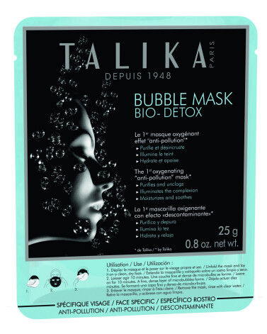 Talika sejas maska Bio Detox Bubble, saskaroties ar ādu, pārvēršas tūkstošos mikroburbuļu, kas attīrīšanas laikā sniedz sejai spēcīgu skābekļa devu. Pēc tās lietošanas āda ir tīra, svaiga un mitrināta. € 13.