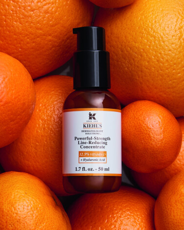 Kiehl’s jaunais koncentrāts Powerful Strength Line Reducing ar hialuronskābi un augstu C vitamīna koncentrāciju (12,5%) izlīdzina sejas krāsu un iedarbojas uz ādas atjaunošanās procesiem, samazinot krunciņas. Samtaina tekstūra un viegli sildoša sajūta pēc uzklāšanas, kas uz mazu brīdi piešķir ādai vieglu sārtumu. € 59.