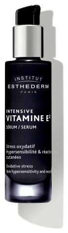 Institut Esthederm serums Intensive vitamine E2. Satur divas savstarpēji papildinošas un īpaši stabilas E vitamīna formas (4%), kas cīnās pret brīvo radikāļu iedarbību, nomierina kairinājumu un mazina ādas jutību. € 69.