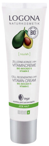 Logona vitamīnu krēms ar 24 stundu iedarbību. Izcila augu eļļu izlase – kokosriekstu, avokado, hohobas, mandeļu, vīnogu kauliņu. Satur arī šī sviestu un granātu sēklu ekstraktu, kas atjauno un aizsargā ādu, sniedz tai enerģiju. € 15,40.