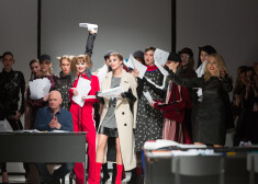 Kad saņemam audumus, sāku ar tiem spēlēties, lieku pie manekena tā un šitā. Un tad pēkšņi vienā brīdī – hops! – un noķeru kaut kādu radošo vilni. Man tas bieži uznāk arī lidmašīnās, tāpēc vienmēr vedu sev līdz planšeti, lai varu zīmēt skices. Kad sakrājas pietieksmi daudz ideju, piesaistu savu komandu un to visu apspriežu ar viņiem.