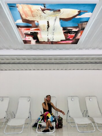 Ieņemt horizontālu stāvokli, aizmirst par apkārtējo vidi un, veroties griestos, sastapties ar gaišumu, vieglumu un vienkāršību, kas rodama Džemmas Skulmes darbos, ļauties visai neierastam mākslas darba baudīšanas veidam - projekta "Skaņai vajag mākslu" pirmajā izstādē