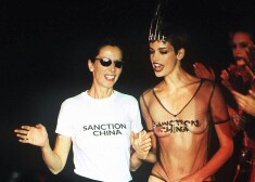 Politiskā apģērba pioniere Ketrīna Hamneta un viņas T krekli ar saukļiem