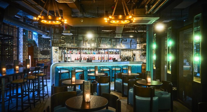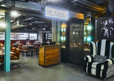 Interjerā saglabāta virkne vēsturisko detaļu (lielie metāla logu rāmji, ugunsdzēsības ieejas durvis, ik pa mirklim atsegtas ķieģeļu sienas utt.), asprātīgu dialogu ar pagātni risina arī publiskajās telpās izvietotie tirdzniecības automāti, kur klienti dabū dzērienus par brīvu.
