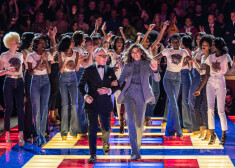 Kolekcijas demonstrēšanas šovs līdzinājās trakulīgai ballītei, un pa "Tommy Hilfiger" krāsās - sarkanā, baltā un tumši zilā - izgaismotu mēli devās arī plus izmēra modeles.