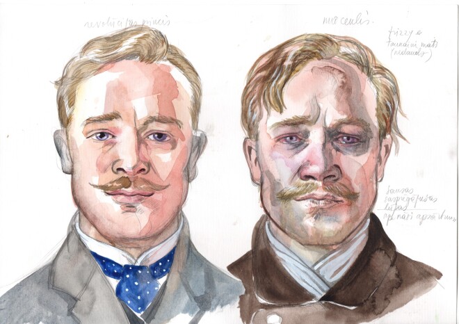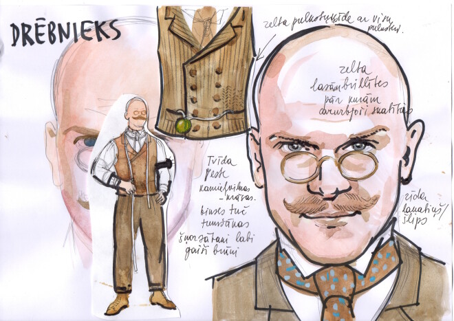 Cik ļoti kostīmu māksliniece galu galā turējusies pie Baibas Baibas radītajām tēlu skicēm? Dažiem tēliem visai precīzi, citiem – ar atkāpi, jo realitāte allaž ievieš savas korekcijas. Visas revolucionāres, šķiet, kļuvušas sievišķīgākas nekā Gata aprakstos, ko Baiba izmantoja par pamatu savām skicēm.