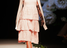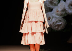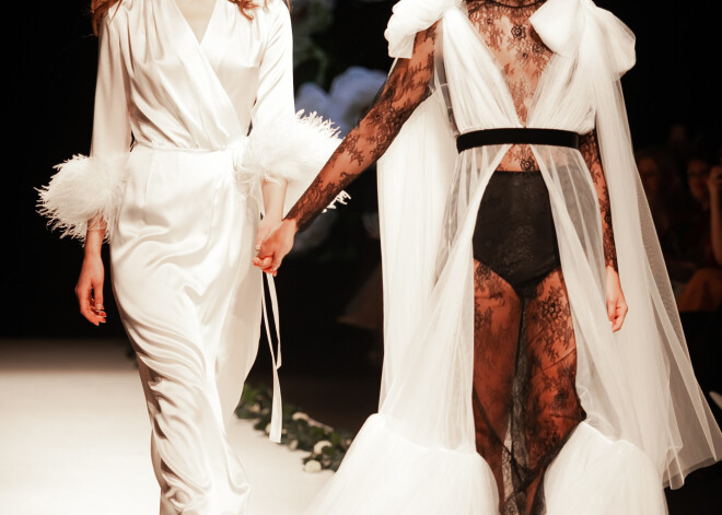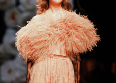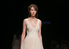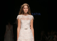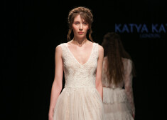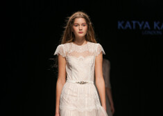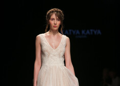“Katya Katya London” demonstrēja ne vien vismodernāko kāzu kleitu piegriezumu, bet arī vispieprasītāko līgavas grimu - svaigu, nepārspīlētu un starojošu. Iespaids par tikko noskūpstītām lūpām panākts ar maigi rozā ietonētu lūpu krāsu bez kontūras.