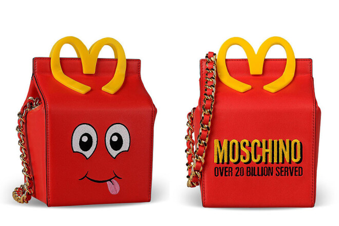 Protams, tiek izmantots arī Moschino vārds, bet šim zīmolam izsenis ir sociālās ironijas meistara slava, tāpēc tas nesmādē ne McDonalds, ne Coca-Cola un citu patērētājkultūras milžu logo aprises – jo vairāk, jo labāk.