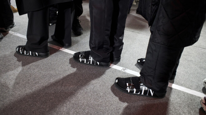 Parīzes vīriešu modes nedēļā Valentino sadarbībā ar Birkenstocks debitēja ar diviem klasisko vasaras apavu uniseksa modeļiem.