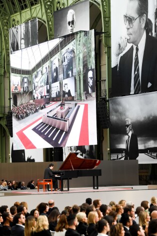 Pasākums notika Parīzes "Grand Palais" - vietā, kurā tik daudz kolekciju savulaik izrādīja mūžībā aizgājušais modes mākslinieks.