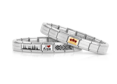 Piedāvājumā arī divi savienoti sudraba posmiņi, kuros attēloti visā pasaulē pazīstami latviešu raksti vai Rīgas torņu siluets.