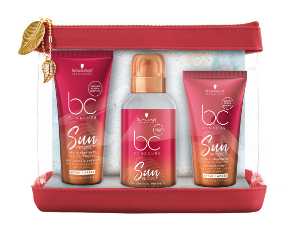 Jaunie Schwarzkopf Professional līnijas BC Sun Protect produkti ar augu eļļām un jūras aļģēm parūpēsies par matu pasargāšanu no UVA/UVB stariem, pirms dodamies saulē. Līnijā ietilpst šampūns, maska, kondicionējošs krēms un izsmidzināmais līdzeklis. Pieejami arī ceļojumu izmērā. Cenas: no € 10,80, ceļojumu komplekts € 27.