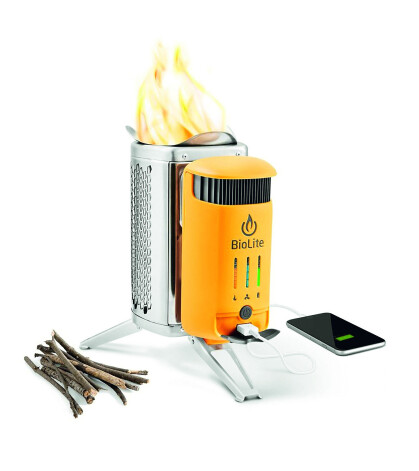 Uzcept gaļu zaļumos, nestiepjot līdzi smagnēju mangaļkasti, varēsiet ar portatīvo krāsniņu BioLite CampStove 2. Miniatūra (21x12,7 cm) un viegla (sver mazāk nekā kilo), tā ērti ieliekama pat visparastākajā mugursomā. Šī iekārta sastāv no pašas krāsniņas un noņemama termoģeneratora, kurš – pievērsiet uzmanību! – var uzlādēt mobilo tālruni, lai pie dabas nepaliekat bez sakariem. Turklāt, jo ilgāk deg krāsniņa, jo spēcīgāk uzlādējas ģeneratora akumulators – tātad jūsu rokās ir teju neizsmeļami enerģijas resursi! Krāsni var kurināt ar jebko, ko atrodat mežā, - sausiem zariņiem, čiekuriem – vai līdzpaņemtām kokskaidu granulām. Lai pagatavotu maltīti, tai uzliekamas elegantas grila restes, lai uzvārītu tēju, - tējkanna (tieši tik prāva, lai pārnēsājot tajā ieliktu pašu krāsniņu!) – skatiet pārgājiena virtuves komplektu BioLite CampStove 2 Bundle. Gaismas diožu lampiņa ļaus gatavot ēdienu pat pilnīgā tumsā. Cenas: € 127 – 150 (krāsns), € 212 – 270 (lauka virtuves komplekts).