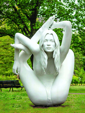 Skulptūru maršrutā Amsterdamā skatāms Keitas Mosas tēls jogas pozā un citi ikoniski darbi