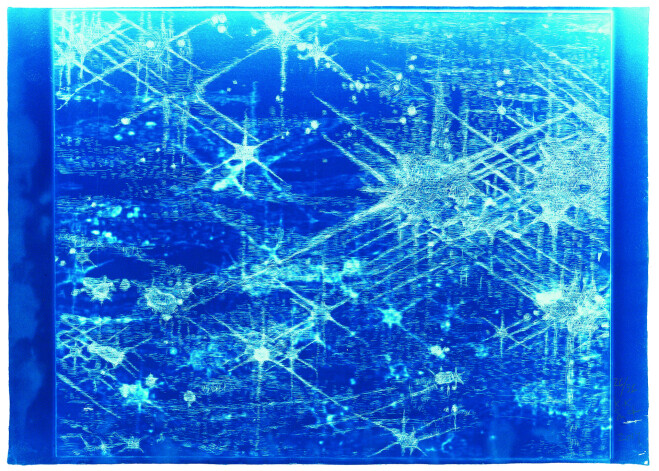 Radījums ar āža galvu un vējā/viļņos plīvojošu zivs asti, kas, ja var ticēt nostāstiem, ļauj tam ceļot pa abām pasaulēm – starp debesīm un jūras dzīlēm –, pa vidu piestājot uz zemes. Ienirt iztēles dziļākajās akās; apvienot radošumu ar ražīgumu. Zemāk, sārtas gaismas apspīdēta, telpās, kur savulaik savu nāvi gaidījušas kazas, mitinās zeltaina nāra – viņas mezglā savijusies zivs aste izlocījusies caur restēm – brīvībā. Kā uzskata Kiki Smita, arī mūsu ķermeņi ir elektriski lādētas sistēmas, kur pozitīvais nemitīgi mijas ar negatīvo un nekas nav pastāvīgs.