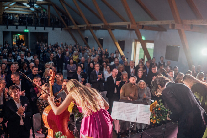 5. oktobrī kultūras un svinību telpa “Kūts” pārtapa par koncertzāli, kur muzicēja trīs izcili virtuozi – ANDREJS OSOKINS (klavieres), KRISTĪNE BALANAS (vijole) un MARGARITA BALANAS (čells).