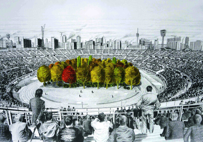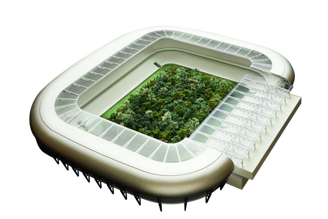 30 gadi... Tieši tik ilgs laiks pagājis, līdz šveiciešu kuratoram Klausam Litmanam izdevies realizēt savu mūža projektu – sporta stadiona centrā iesēdināt mežu kā mākslas objektu.