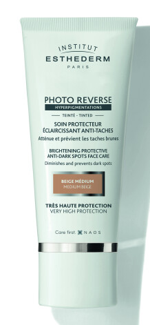 Institut Esthederm Photo Reverse – saules aizsardzības krēms ar toni. Novērš hiperpigmentācijas radītās sekas un nodrošina aizsardzību pret UVA un UVB stariem. Iedarbojas uz melanīna veidošanās procesiem, izlīdzina toni, mitrina ādu, kā arī stimulē tās dabiskos aizsargmehānismus. Cena: € 65.