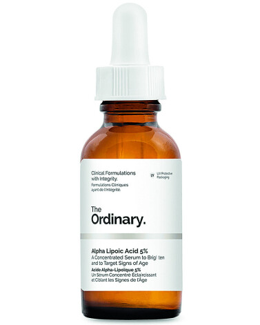 The Ordinary 8 % askorbīnskābe ar 2 % alfa arbutīnu. Veicina kolagēna sintēzi, nomāc melanīna ražošanu, nodrošina spēcīgu antioksidantu aizsardzību. Izlīdzina ādas toni, padara to starojošu. Cena: € 9,99.