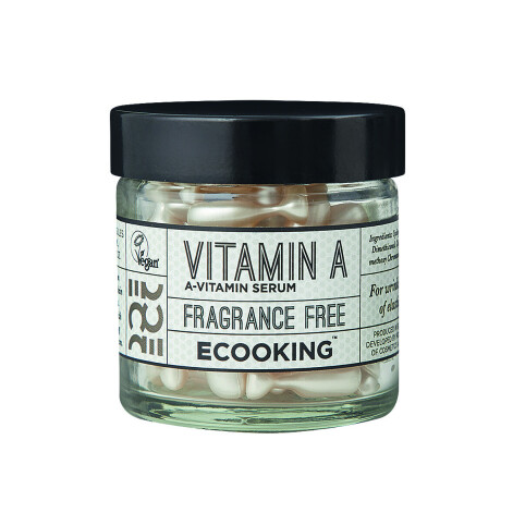 Ecooking A vitamīna serums sejai. Palīdz samazināt pigmentāciju un priekšlaicīgu ādas novecošanu. Uzlabo ādas elastību un to spēcīgi mitrina, padara gludāku un mirdzošāku. 100 % vegānisks sastāvs. Cena: € 51,99.