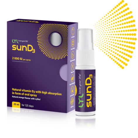 LYL Love Your Life LYLsunD3 – vitamīns izsmidzināma spreja formā ar zinātniski pierādītu iedarbības efektivitāti, kas uzsūkšanās jaudā ievērojami pārspēj D vitamīnus spreja formā uz eļļas un ūdens bāzes. Pateicoties mikroemulsijas LYLmicroÔ formulai, spēj pacelt D3 vitamīna līmeni asinīs vidēji līdz pat 132 % mēneša laikā. Cena: 15 €.