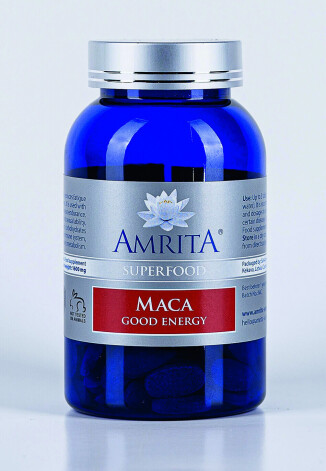 Amrita Maca Good Energy makas saknes pulveris satur antioksidantus, minerālvielas un augu savienojumus, kas uzlabo smadzeņu darbību, vairo enerģiju, paaugstina libido, var palīdzēt mazināt menopauzes simptomus, tostarp trauksmi un garastāvokļa svārstības. Cena: 23 €.