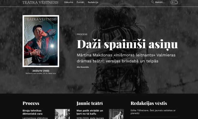 Publiskai pieejai atklāts žurnāla "Teātra Vēstnesis" digitālais "paplašinājums" - platforma "teatravestnesis.lv", informēja žurnāla producente Ieva Anševica.