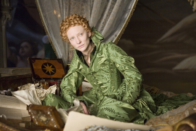 Anglijas karalienes Elizabetes (viņu tēloja Keita Blanšeta) kostīmi nepretendē uz vēsturisku trāpīgumu – tā ir brīva fantāzija par 16. gadsimta modes tēmu. Tērpu silueti atbilst laika garam samērā precīzi, bet ar krāsu gammu kostīmu māksliniece Aleksandra Bīrna ir eksperimentējusi gana brīvi. Tādēļ karaliene priecē skatītājus ar tērpiem visās varavīksnes krāsās, katra no tām raksturo viņas dvēseles stāvokli.