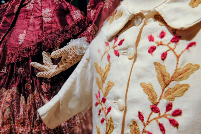 No rišainām kleitiņām līdz hipiju kļošenēm - Modes muzejā skatāma jauna izstāde "Māte un bērns"