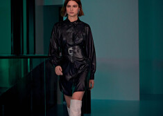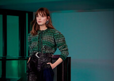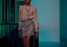 Garderobē ir arī vīriešu apģērba stila uzvalki klasiskos melnos un baltos toņos, kas miksēti ar izteiksmīgākiem motīviem, piemēram, dzīvnieku apdrukām, kuras izceļ krepa blūzes un kreklkleitas.