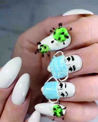 Nagu noformēšanā iezīmējās divas diametrāli pretējas tendences. No vienas puses, aktuāls kļuva dabiskums. Netiekot pie savas manikīres, dāmām bija jāatsakās no gēla lakas, daudzas iedrīkstējās nagus nelakot vispār, lai tos atpūtinātu. No otras – neparasts manikīrs kļuva par savdabīgu sarkano lūpu krāsu, nagus dekorējām, lai jelkā palīdzētu sev, mīļajām, pārciest drūmo, pelēko ikdienu. Mājsēdē varēja atļauties eksperimentēt gan ar nagu garumu, gan to formu un dizainu. Manikīra zvaigznes neskopojās ar padomiem, un tā pamati tika aši apgūti, pateicoties tiešsaistes stundām sociālajos tīklos un YouTube ierakstiem.