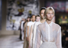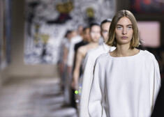 Pērlītēm izšūtas kleitas, kombinezoni, neitrāli toņi: "Dior" izrāda jaunāko kolekciju Parīzes modes nedēļā