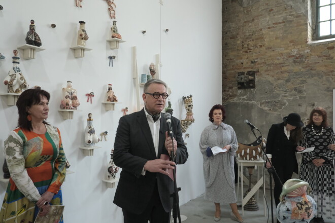 Latvijas paviljona tradicionālajā mājvietā – Venēcijas Arsenāla Artilērijas zālē – viesus uzrunāja paviljona ekspozīcijas veidotājas, Latvijas Republikas kultūras ministrs Nauris Puntulis un Latvijas Republikas ārkārtējā un pilnvarotā vēstniece Itālijas Republikā Solvita Āboltiņa.
