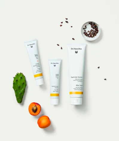 Līdz ar spožajiem saules stariem īpašu uzmanību pievēršam ādas aizsardzībai! Dr. Hauschka saules līnijā tagad ir trīs produkti – arī jaunais sejas krēms ar SPF 10 un tonējošais sejas krēms ar SPF 30. To sastāvā ir minerāli, kas aizsargā pret saules stariem, vienlaikus mitrinot un kopjot ādu sauļošanās laikā. Cena: 32,50–33,40 € (40 ml). Savukārt pēcsauļošanās losjonam, kas intensīvi mitrina un kopj ādu pēc saules peldēm, ir jauns iepakojums.