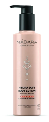 Bagātināts ar hialuronskābi, ādai radniecīgiem mitrinātājiem un antioksidantiem piesātināto raspodiņa ekstraktu, Mádara ķermeņa losjons Hydra Soft sola ilgstošu mitrināšanu, komfortu un aizsardzību. Ātri iesūcas ādā, padarot to samtaini maigu un gludu. Viegls balto ziedu aromāts, kas saistās ar siltām vasaras dienām. Cena: 19,90 € (250 ml).